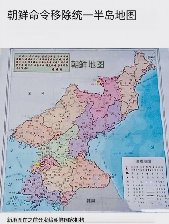 要注意的是,朝鲜方面的“去韩化”可不仅仅是说说而已。据韩媒引述平壤消息人士透露,朝鲜已经下令更换全国党部的地图。与旧版不同的是,新版不再标注整个朝鲜半岛,而是只显示北部的朝鲜,南部则被标注为“韩国”,字体和中国、俄罗斯一样,且涂成灰色,没有任何行政区划。