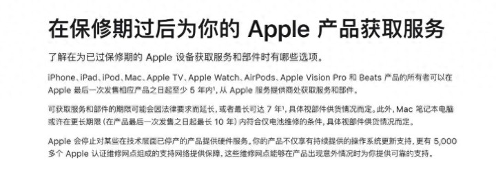 而对于停售已超过 7 年的产品,可能会被标记为“停产产品”(obsolete)。一旦被归为此类,苹果将正式终止其所有官方支持服务。