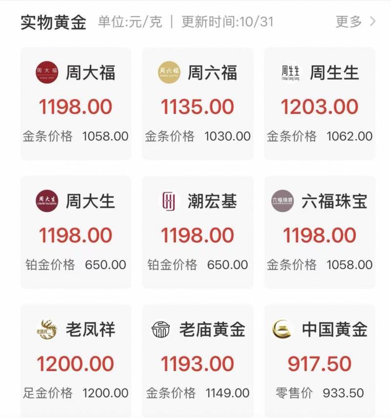 10月31日下午杠杆配资官网,COMEX黄金期货翻红,截至发稿时,报4022.6美元/盎司,涨0.16%。虽然黄金现货此时仍微跌,但守住了4000美元关口。受连日来,国际金价在高位区间持续波动影响,国内品牌黄金克价也持续波动。北京青年报记者注意到,10月31日,部分品牌金饰克价重新站上了1200元。